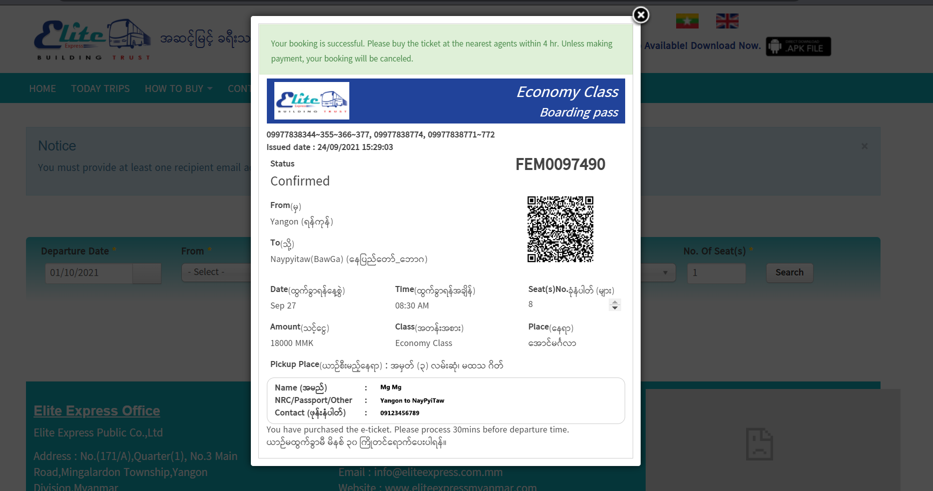 ၄။ ခရီးသည် အချက်အလက်များဖောင်တွင် လိုအပ်သော အချက်အလက်များကို ဖြည့်သွင်းပြီး ငွေပေးချေမှုပုံစံတွင် Payment ကို ရွေးချယ်ပေးရပါမည်။ email သို့ လက်မှတ် ပို့စေလိုပါက မှန်ကန်သော email ကို ဖြည့်သွင်းပါ။ ထိုနောက် Continue to Buy Now ကို နှိပ်ပါ။