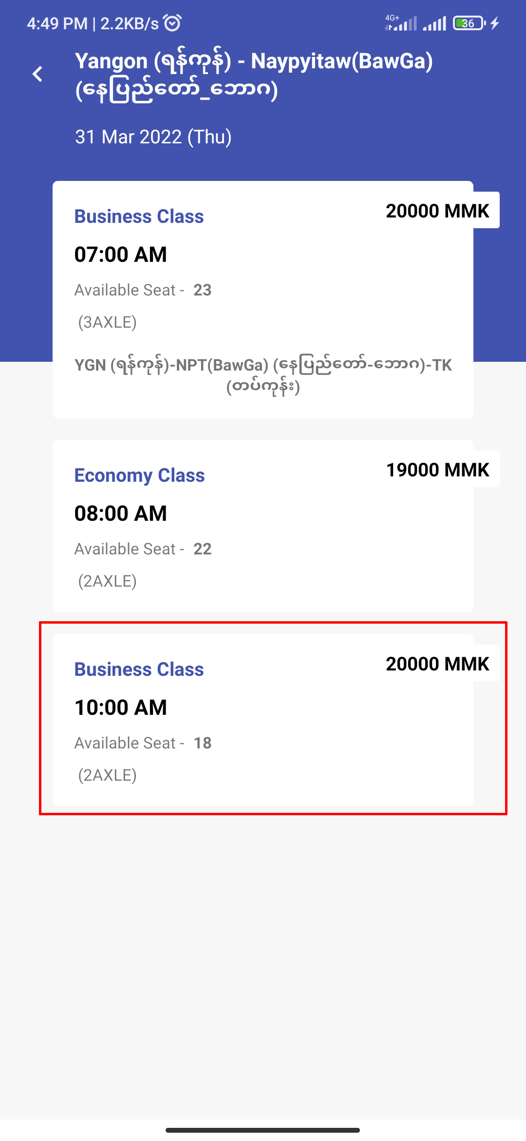 Please choose(if one or more trips was shown) one of the trips which may have the different depart times and classes. The different classes also have the different prices and facilities.