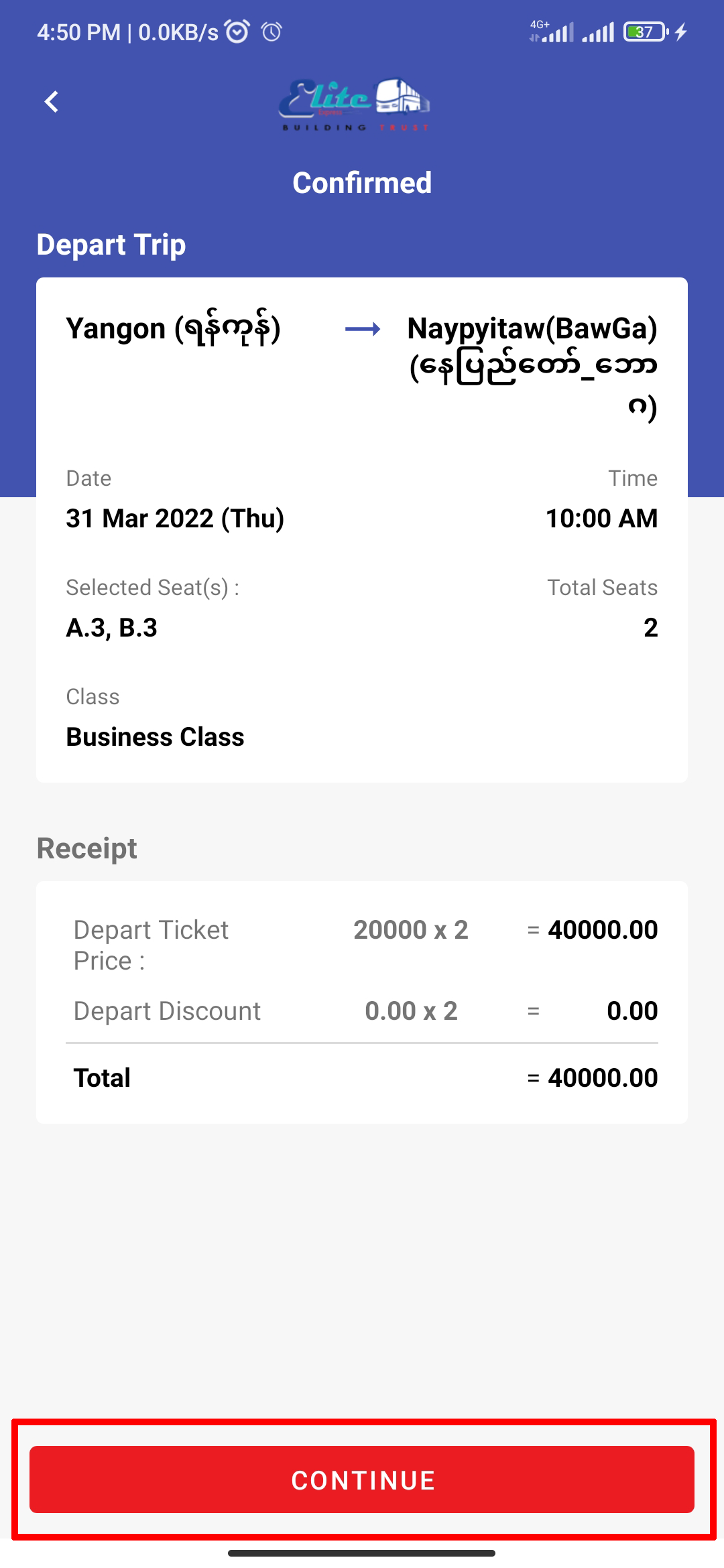 Check your passenger information carefully and click 'CONTINUE'.