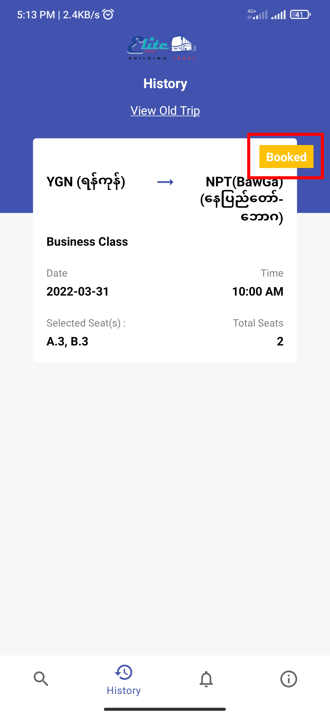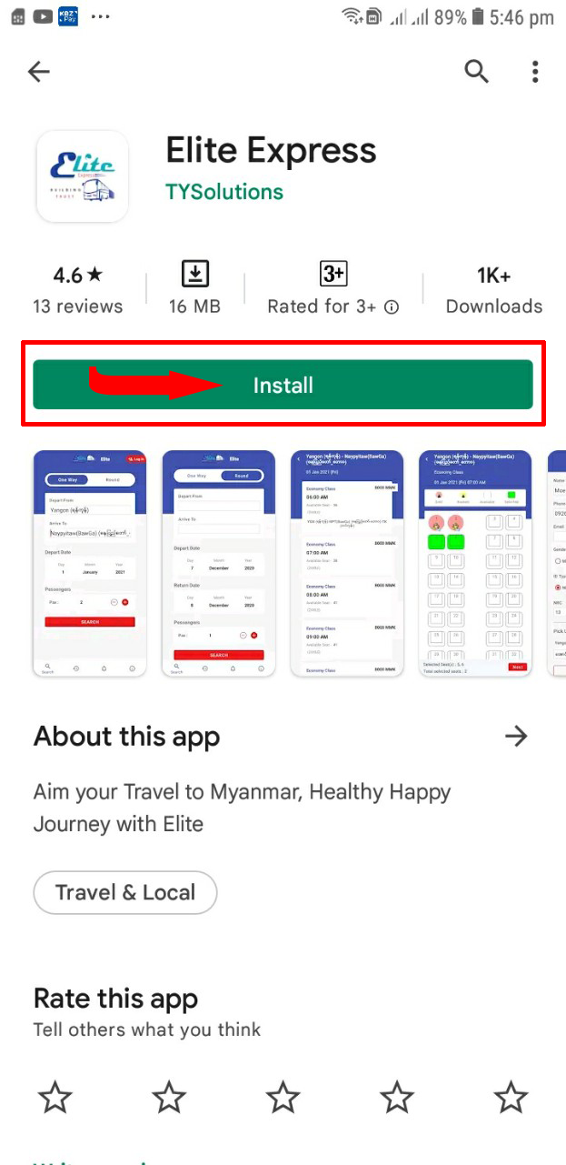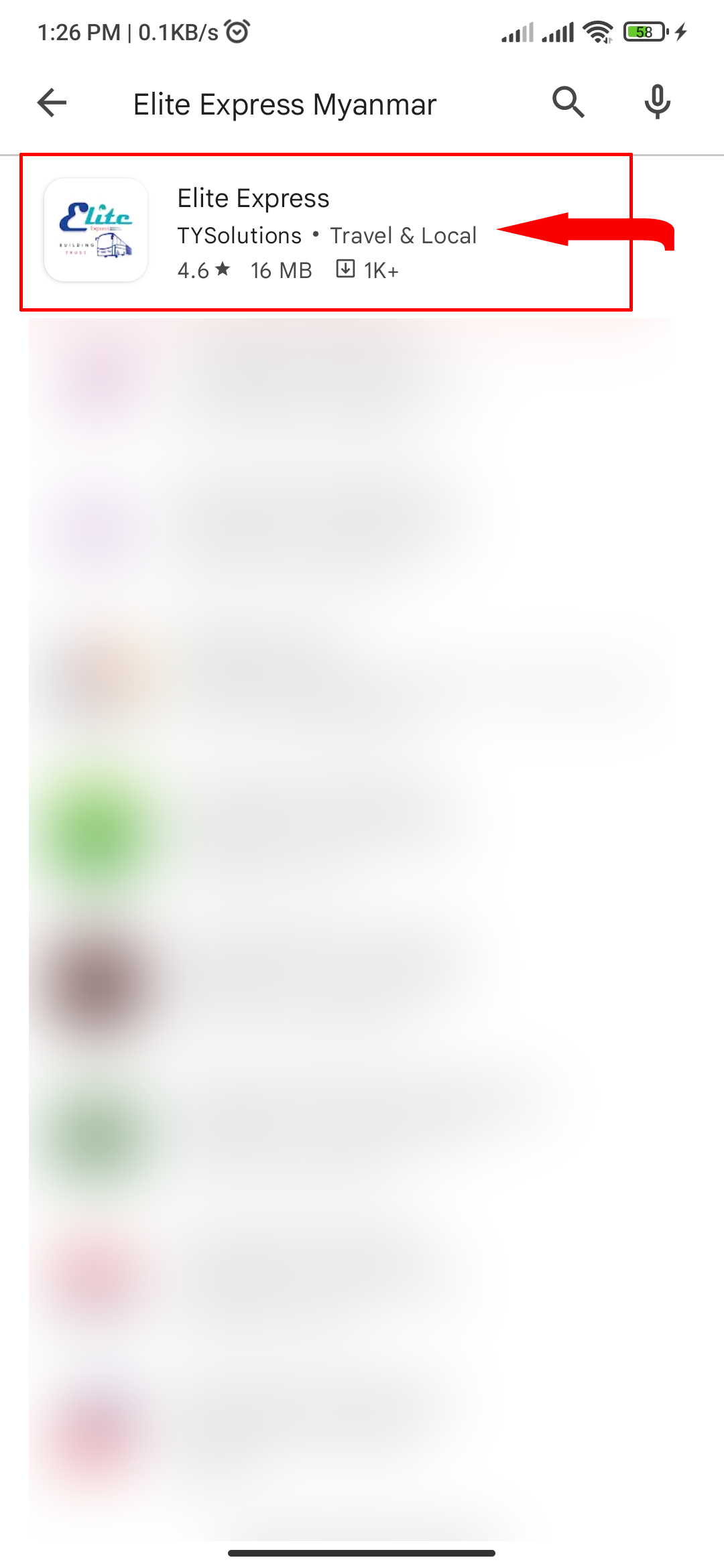 Type "Elite Express Myanmar" and search in the input.