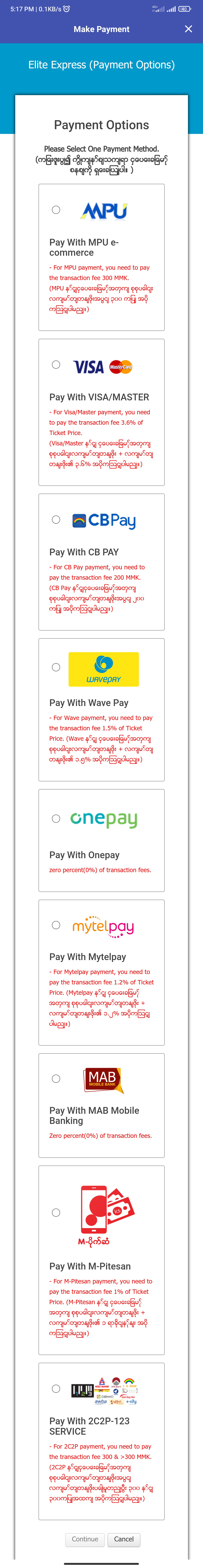Note: You need to collect your booking ticket within 4 hrs via Payment Gateways or the near agents. If not, your booking ticket will cancel automatically after 4 hrs.