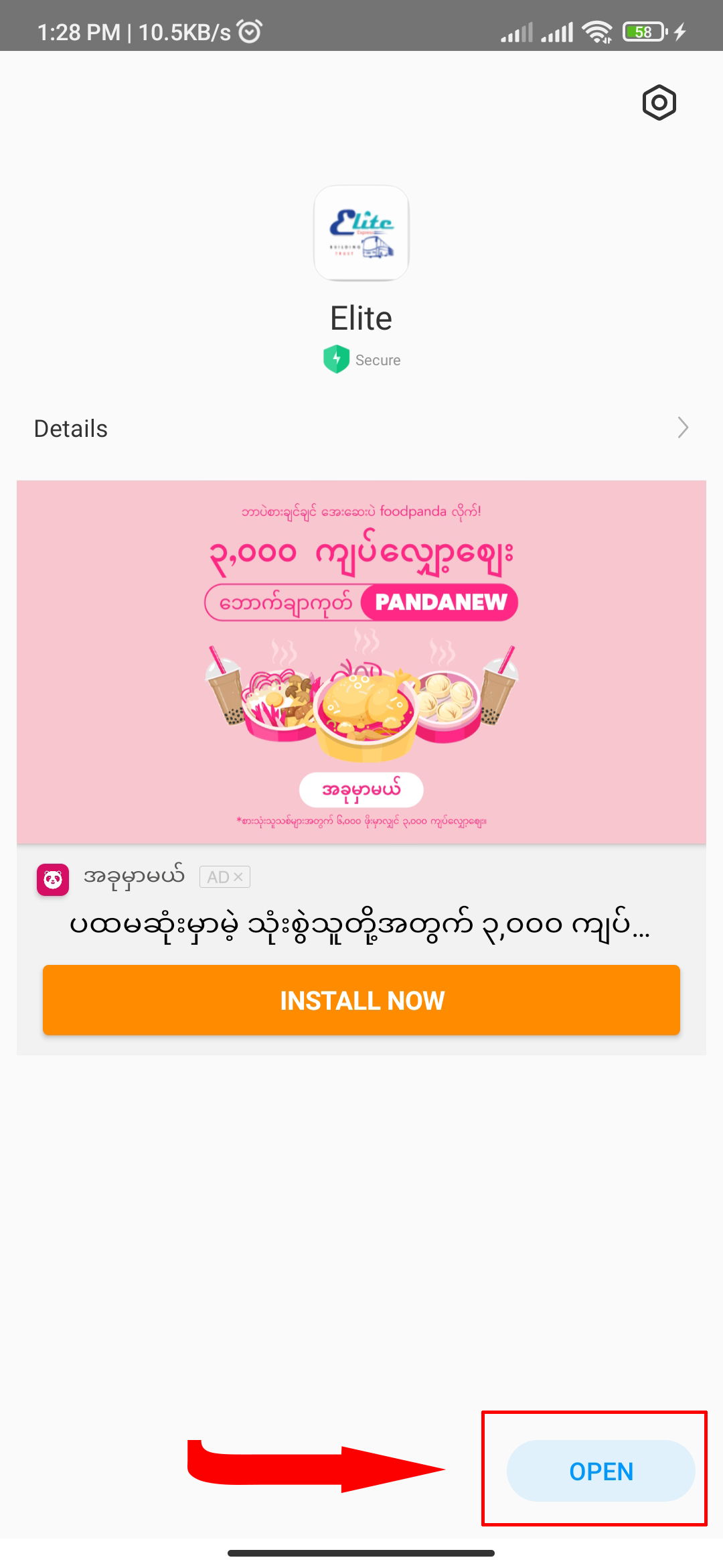 When your download finishes, Play Store will automatically install 'Elite Express' app. Then you can open the app directly action on "OPEN".