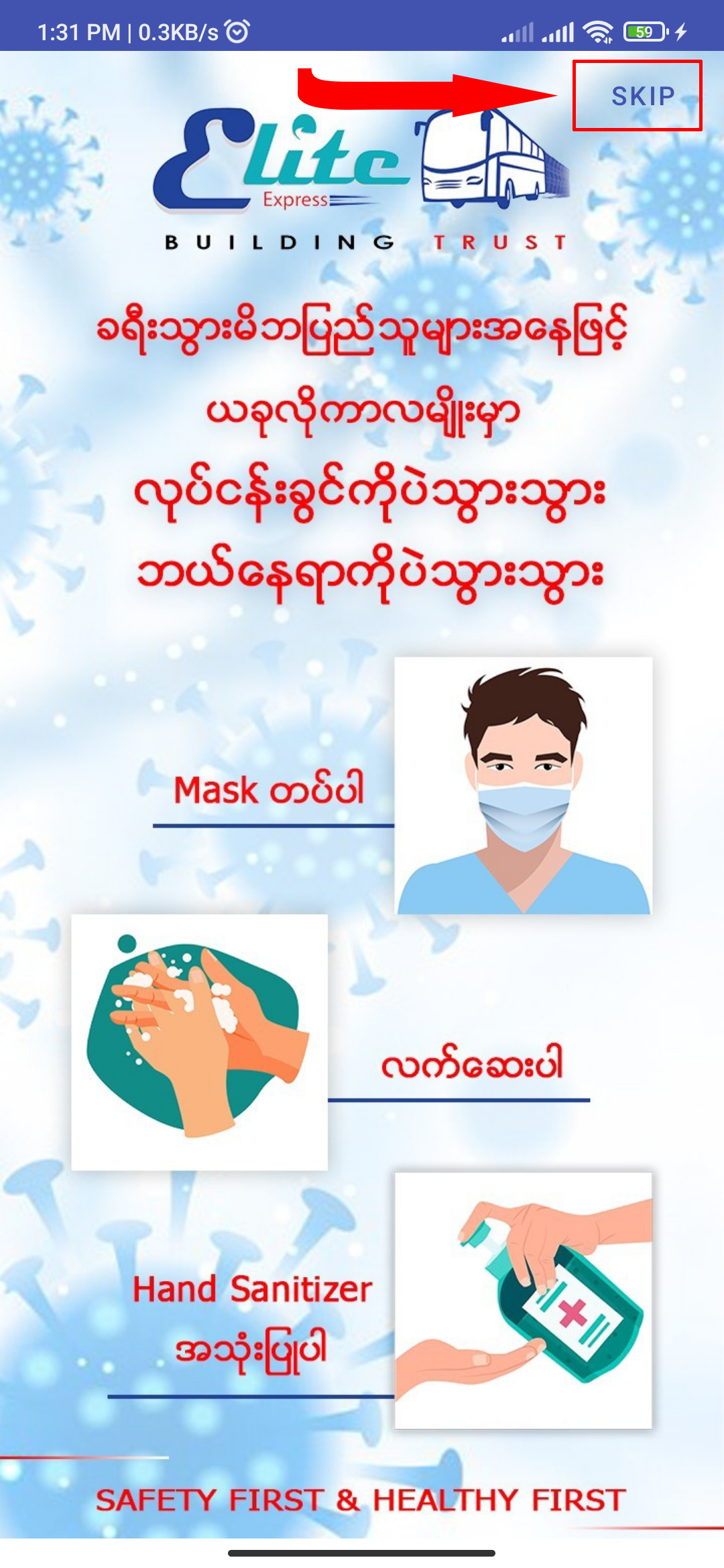 After Elite app has opened, you need to wait about 3 to 4 seconds or click "SKIP" from advertisements.