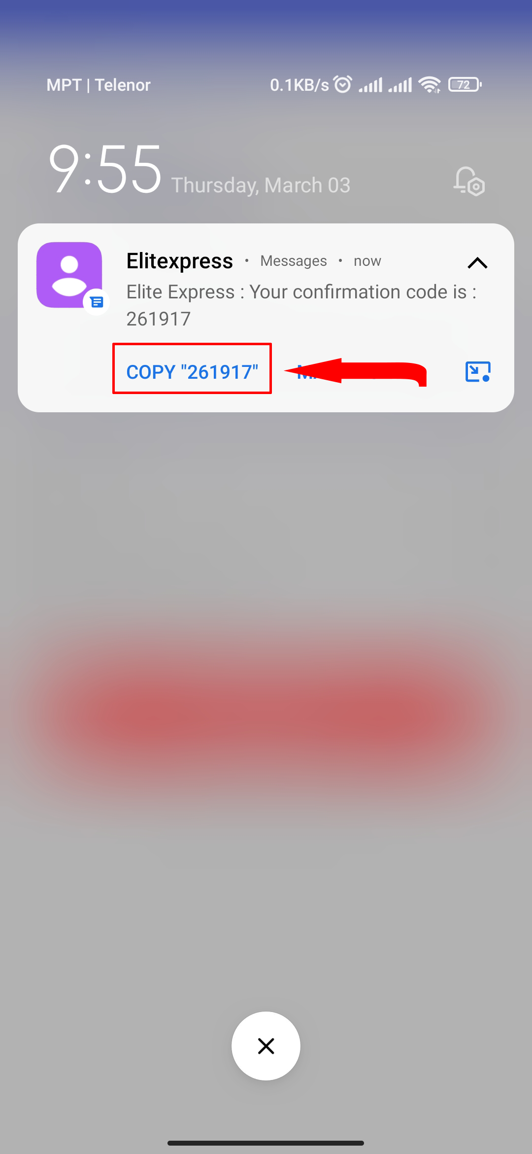 Elite will send 6 digits OTP code to your mobile phone. Please note or copy it.