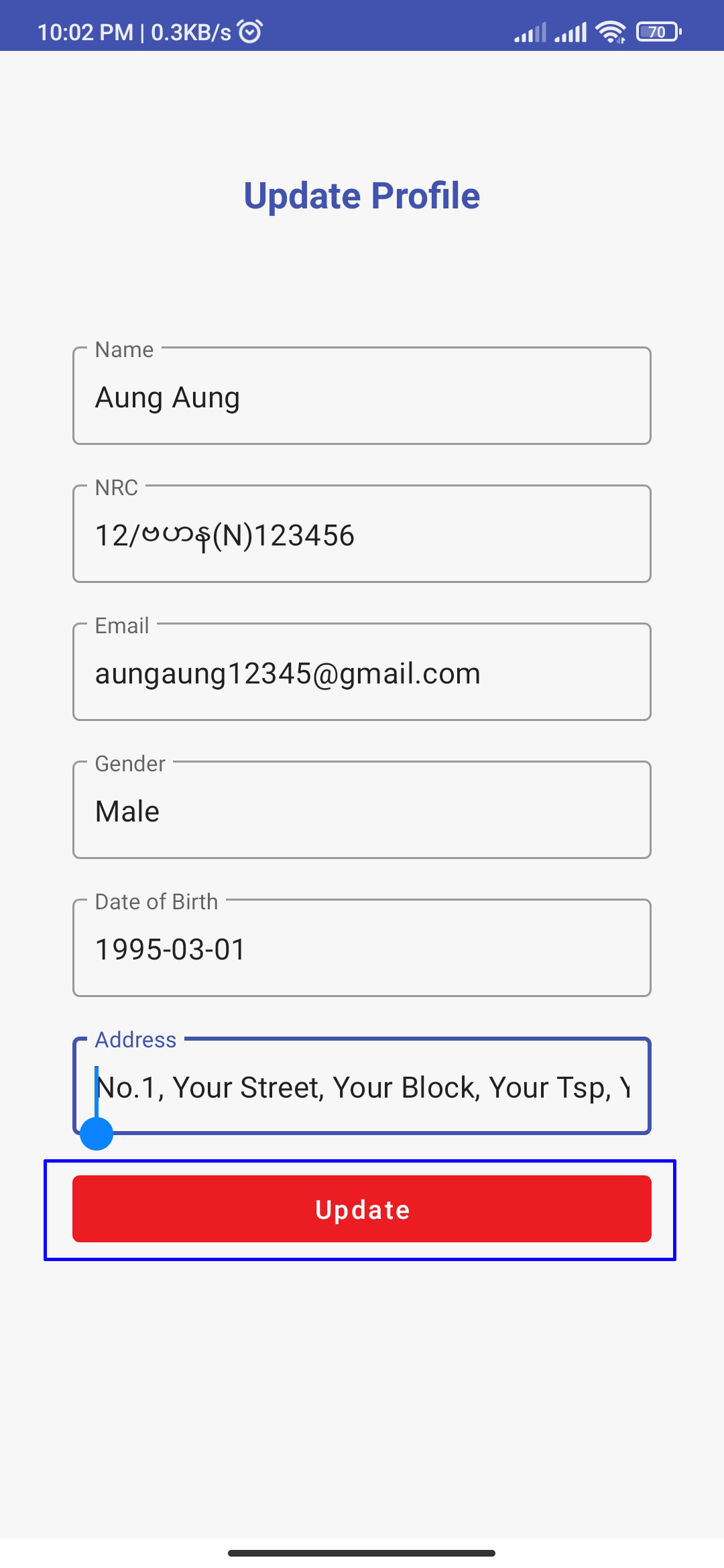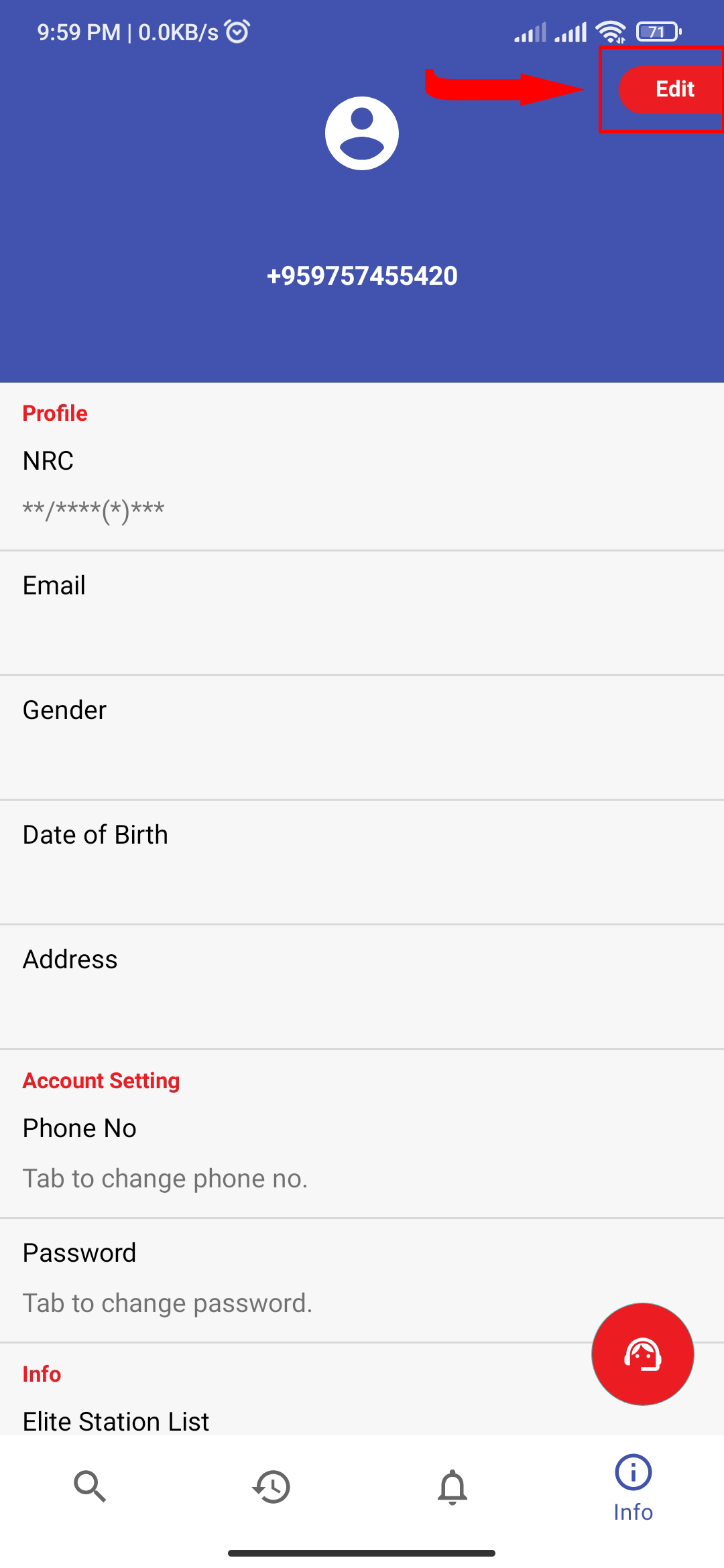 You can check or modify your data(change phone number, password, ...) and profile(Name, Address, ...) here. Now click "Edit" to update your profile that we skipped in step 6.
